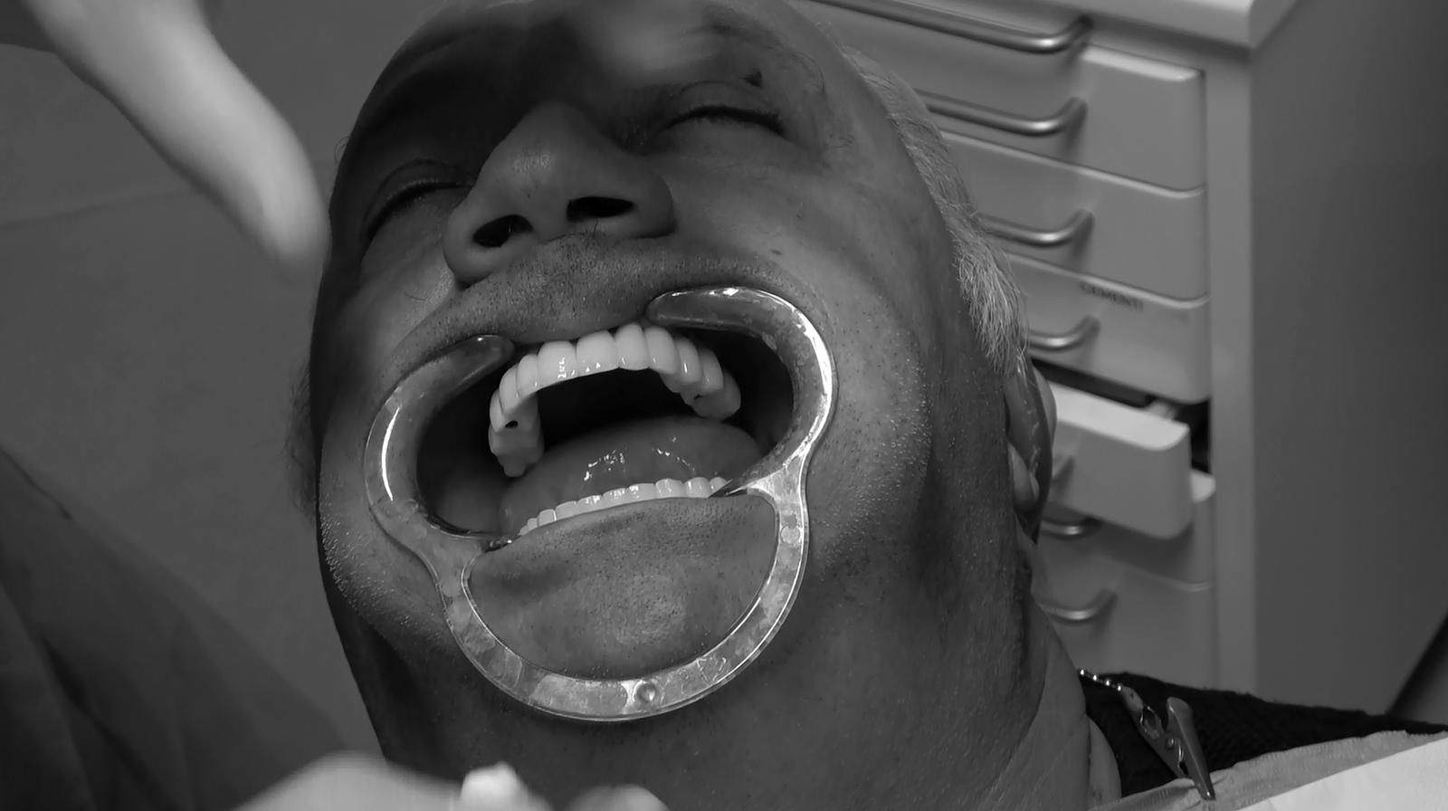 Our cutting-edge procedure enabled this patient to receive fixed dental implants in both the anterior and posterior regions. With this technology, a ceramic prosthesis with 14 teeth was crafted, restoring the ability to chew even the deepest posterior molars. The result? A natural, appealing smile without the need for a false gum.